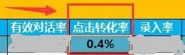 2、下图所示,移动端点击转化率较低,是比较偏低的,行业平均水平在1%左右。(以下数据已经过处理)