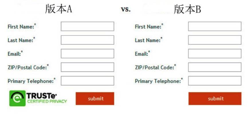 图像并不总是指人物肖像或者产品图片。下面的拆分试验说明了eTrust图像对注册表单完成率的影响。在阅读的结果之前,请先猜测哪个版本会胜出。