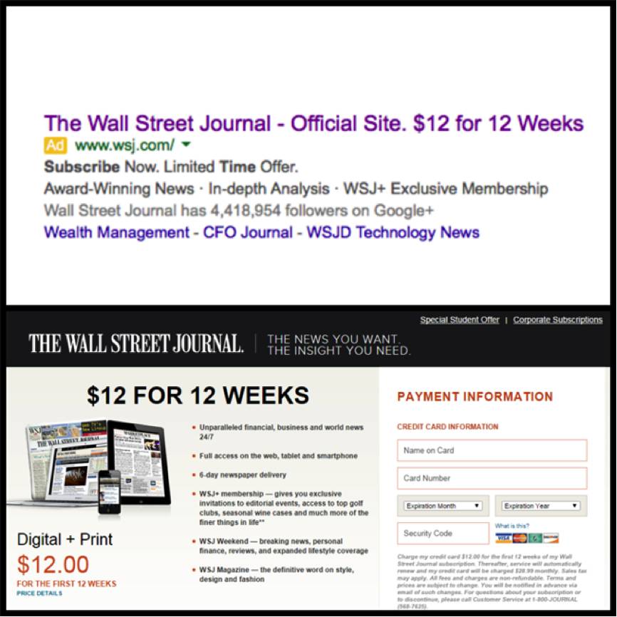然而在用于上述测试的实际点击付费广告的图片并不可用,下面的图像展示的案例就说明了您的点击付费广告应该与着陆页相匹配。