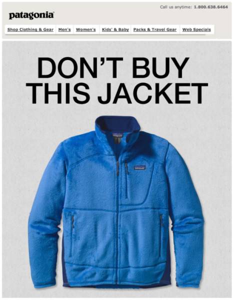 Patagonia的用户群体是探险者(或者想被看作探险者)。像这样的广告呈现在你面前,肯定会有潜在的风险。
